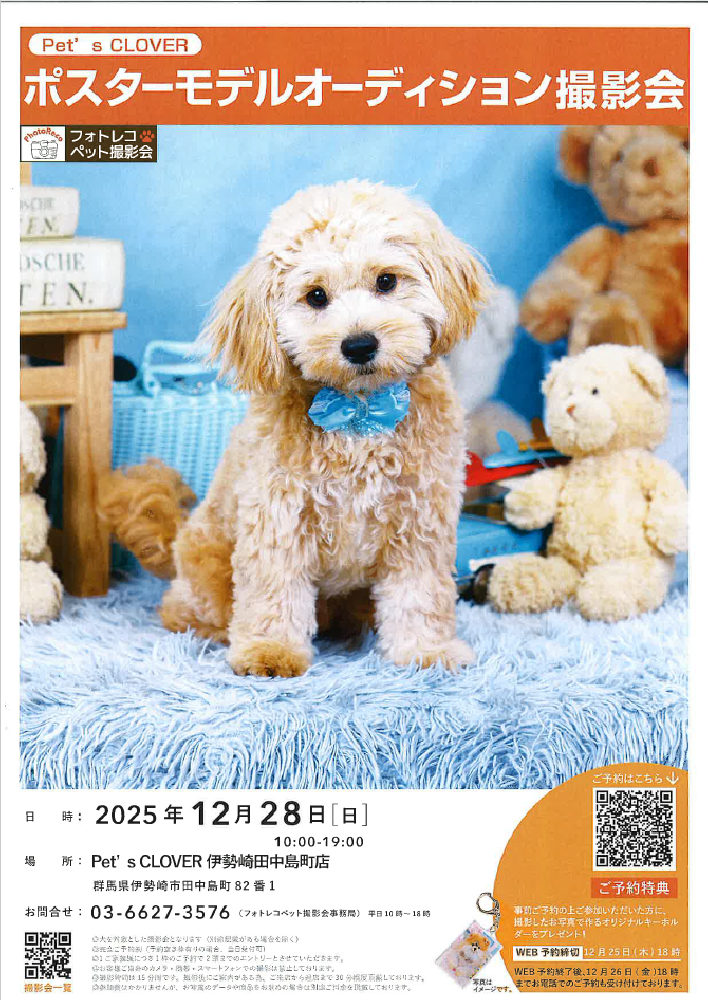 | プロのカメラマンによるワンちゃんの写真撮影会を開催します! おうちの子を可愛く撮影してみませんか? ご予約特典として撮影したお写真で作成するキーホルダーもプレゼント致します! |